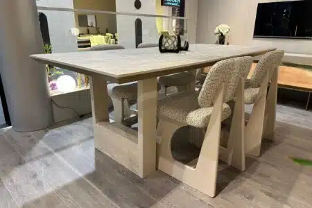Der Esstisch MS35 im Travertin-Design vereint moderne Eleganz mit großzügigen