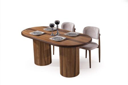 Der Esstisch MET-23 beeindruckt mit seiner massiven Holzplatte und stilvollen